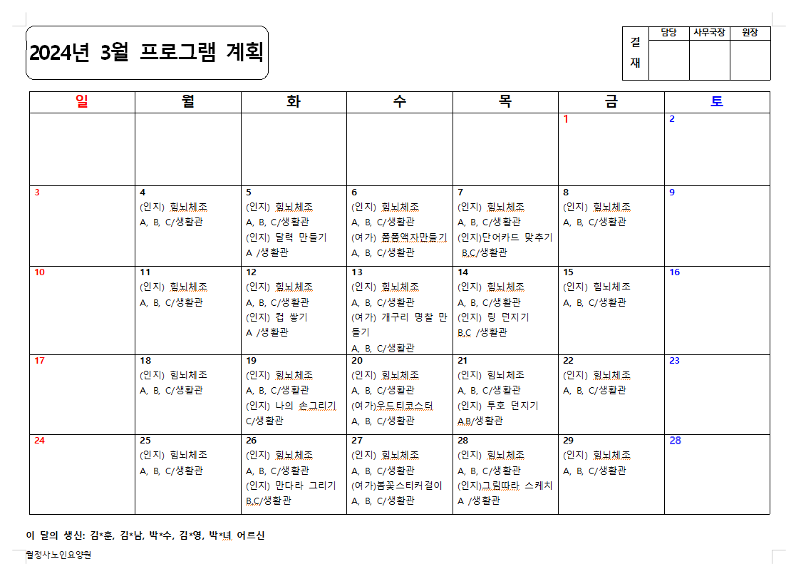 3월 프로그램 일정