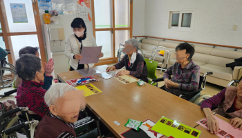 오늘은 개구리 모양 명찰 만들기를 했습니다! 개굴개굴 개구리 얼굴에 이름을 넣고 개구리 얼굴을 예쁘게 꾸며줬어요:) 어르신들이 자신의 이름이 적힌 개구리 명찰을 완성하고 너무 좋아하셨습니다~💕