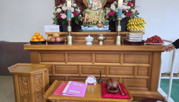 오늘은 3층 생활관에서 약사재일 기도를 진행하였습니다. 참석을 희망하시는 어르신들은 한자리에 모여 조용히 기도를 하셨습니다.