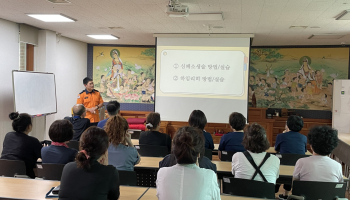 13일 (화) 월정사노인요양원은 안전사고예방을 위하고 보다 신속, 정확하게 응급상황에 대응하기 위하여 직원을 대상으로 응급상황대응 (심폐소생술, 하임리히 방법)교육과 실습이 진행되었습니다. 본 교육은 평창소방서 대응 총괄과 교육 담당자 분이 방문해 주셨습니다. 요양원뿐만 아니라 일상생활에서도 가장 필요한 심폐소생술과 하임리히 방법에 대하여 이론 교육과 함께 직접 실습을 통하여 보다 신속, 정확하게 응급상황에 ...