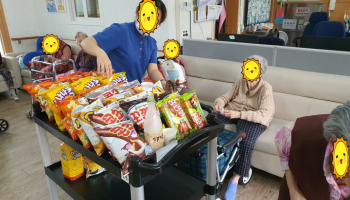 안녕하세요, 월정사노인요양원 사회복지사입니다! 9월 17일 어르신들이 가장 좋아하시는 특화프로그램인 실내장터 프로그램을 실시하였습니다! 어르신들께서 과자 종류가 많아서 어떤 과자를 골라야 할 지 고민된다고 하셨어요! 신중하게 고른 과자를 드시며 즐거워하시는 우리 어르신들 다음에도 어르신들이 더 좋아하실 프로그램으로 찾아뵙겠습니다!